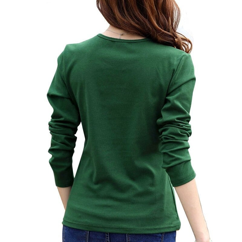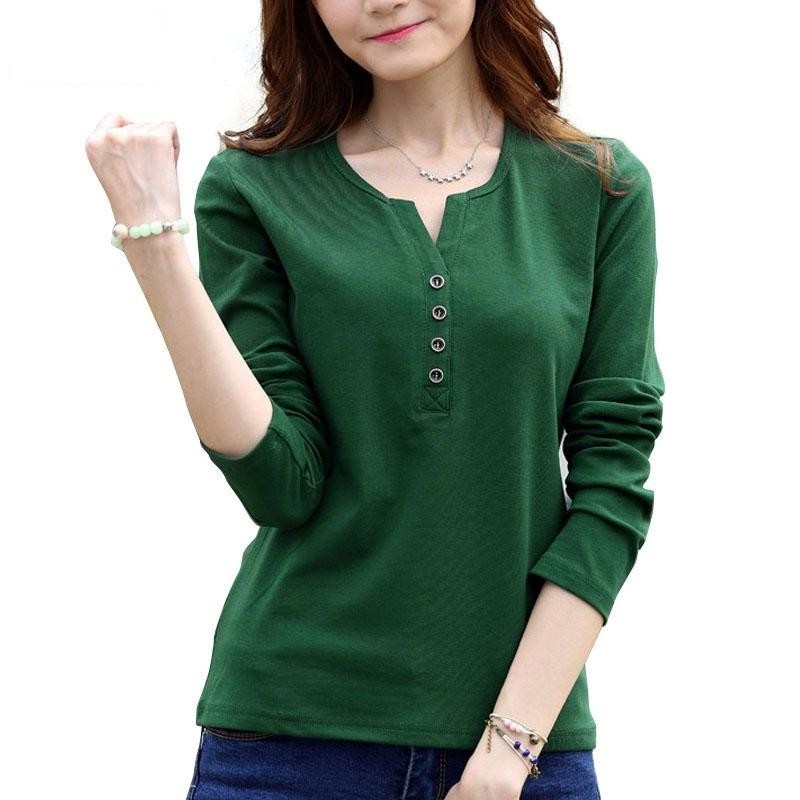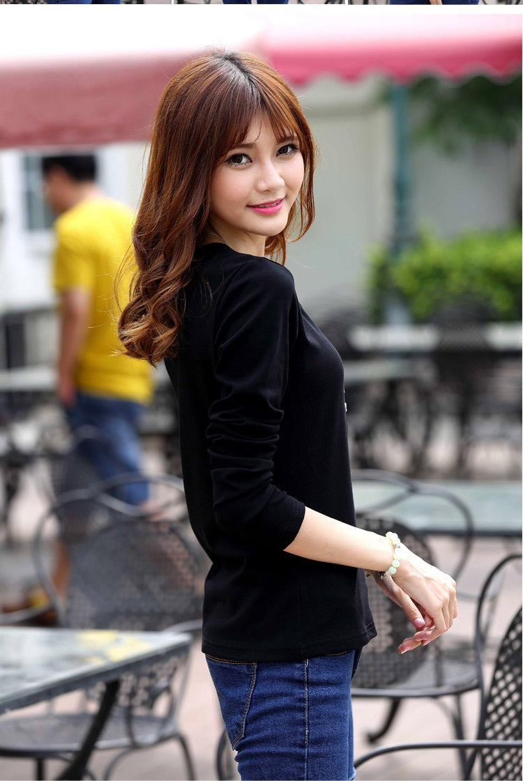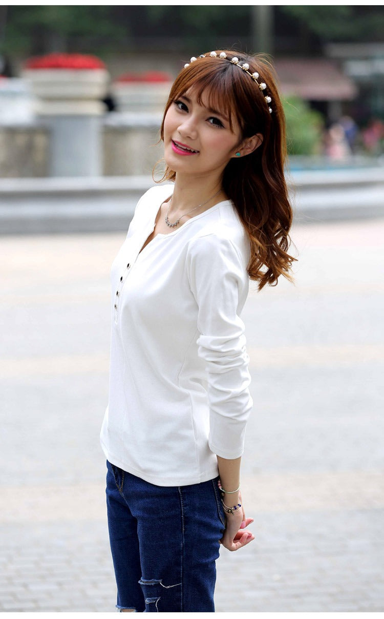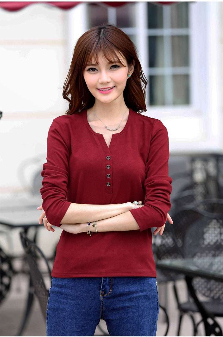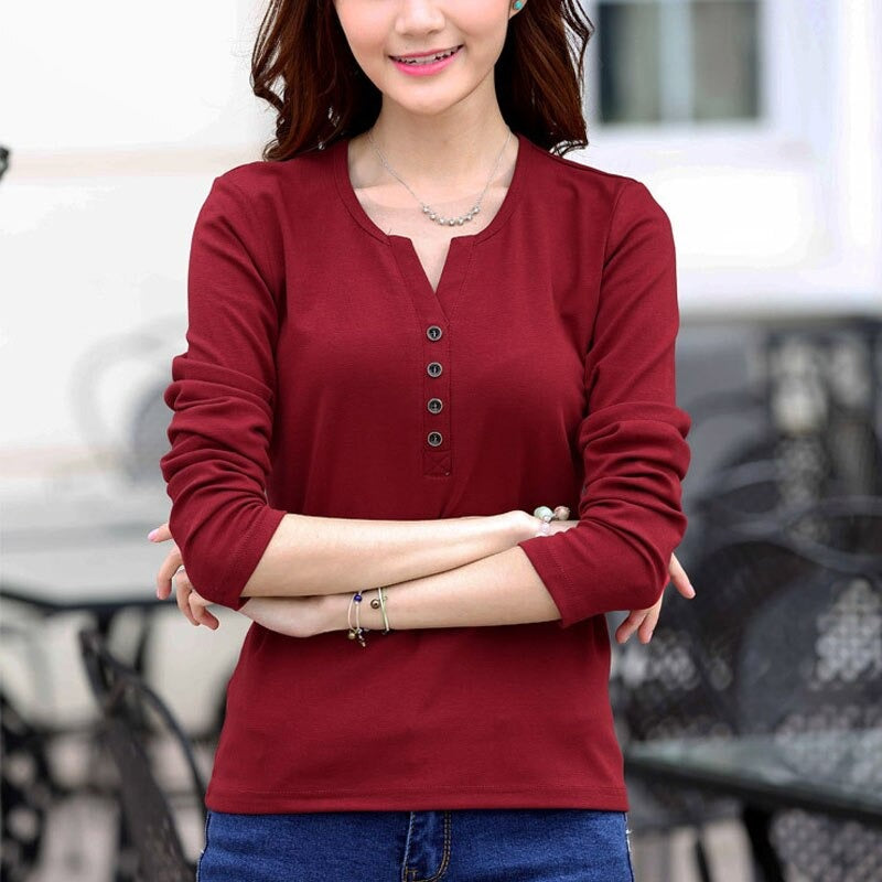 Autumn Fashion Long Sleeve T-Shirt Tops with Button Decoration for Women