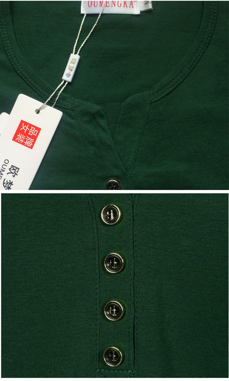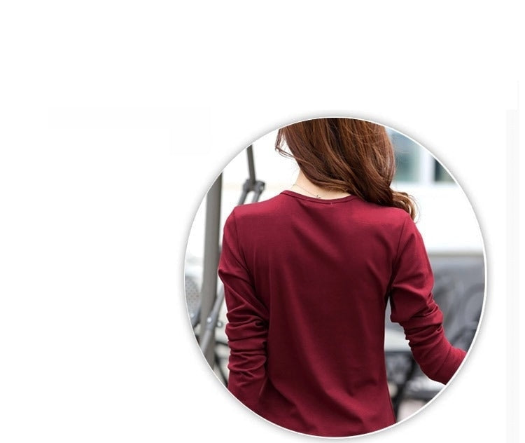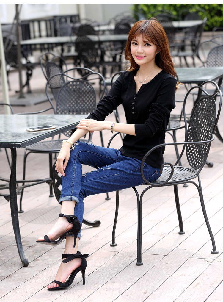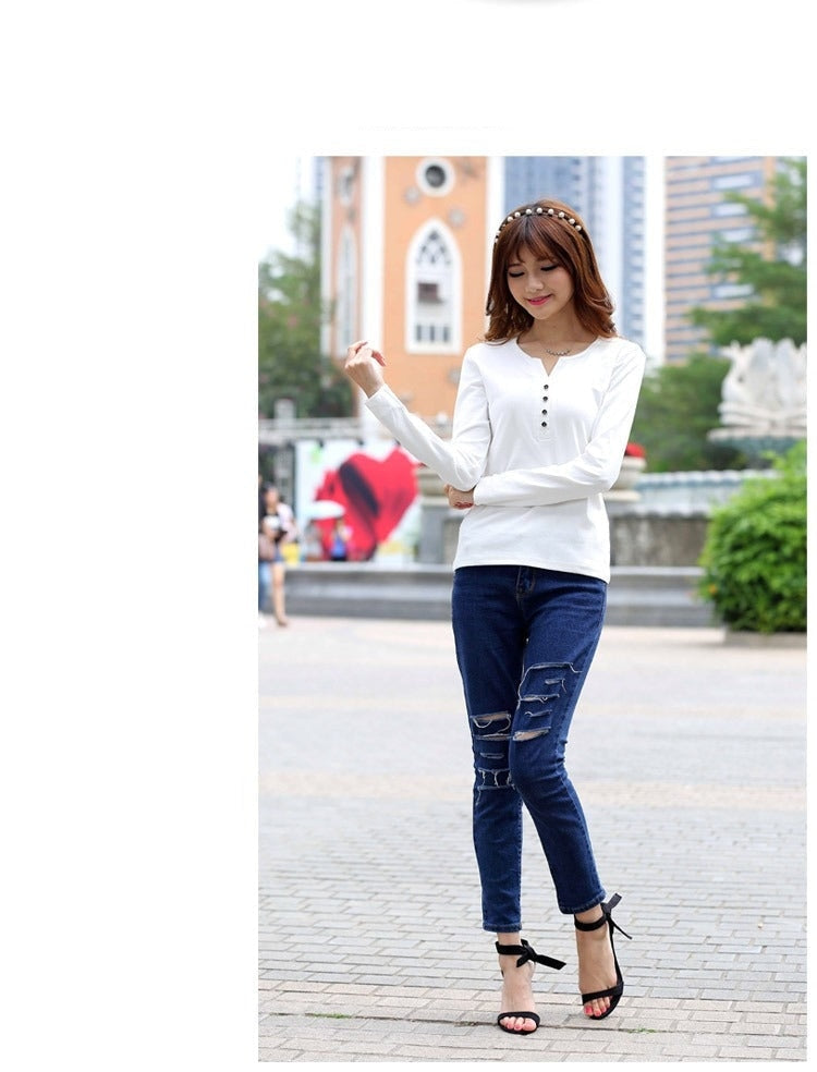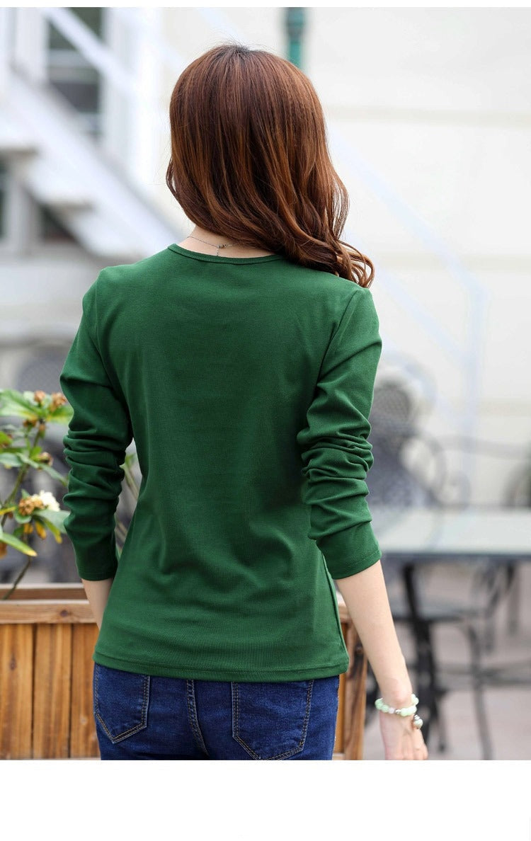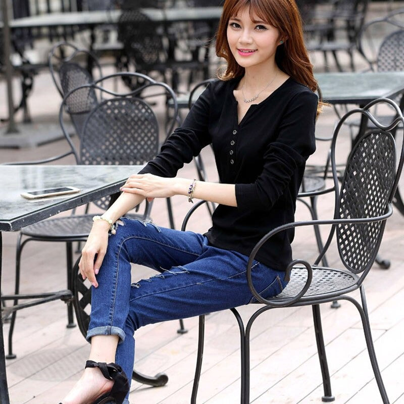 Autumn Fashion Long Sleeve T-Shirt Tops with Button Decoration for Women