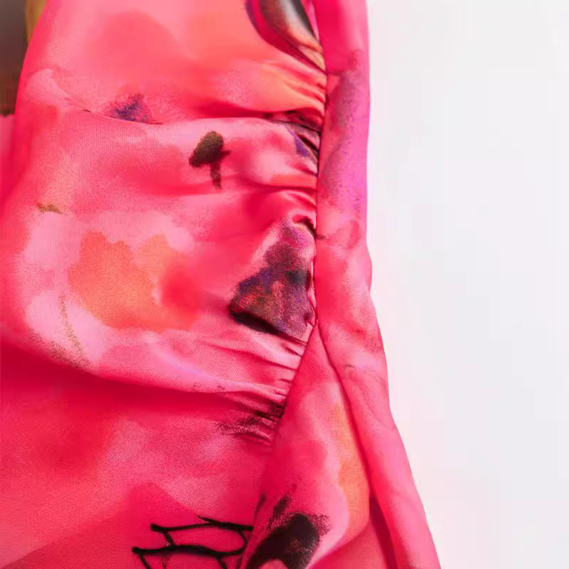 Casual Flower Printed Silk Satin Texture Dress