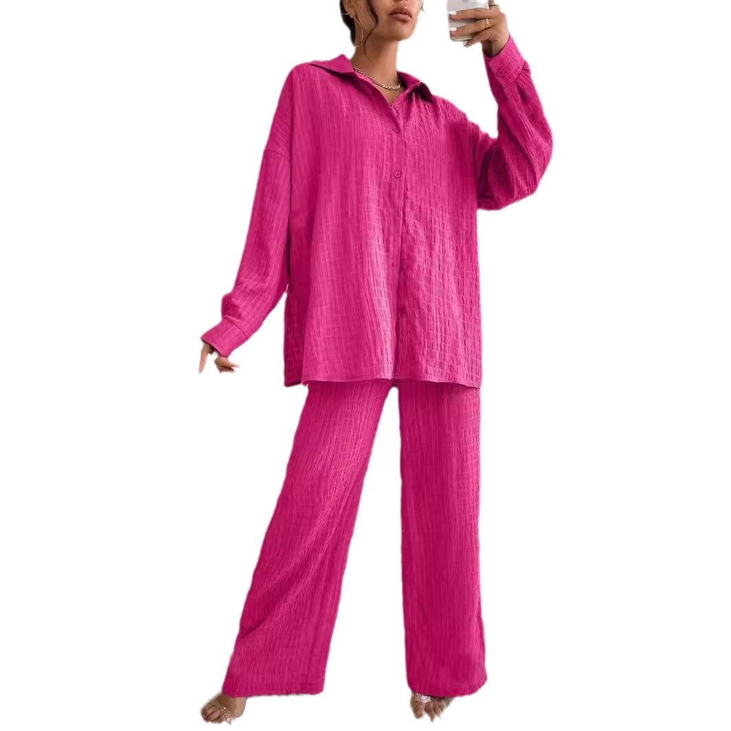 Fashion Casual European And American Style Pleated Trousers Long Sleeve Lapel Elegant Suit Women