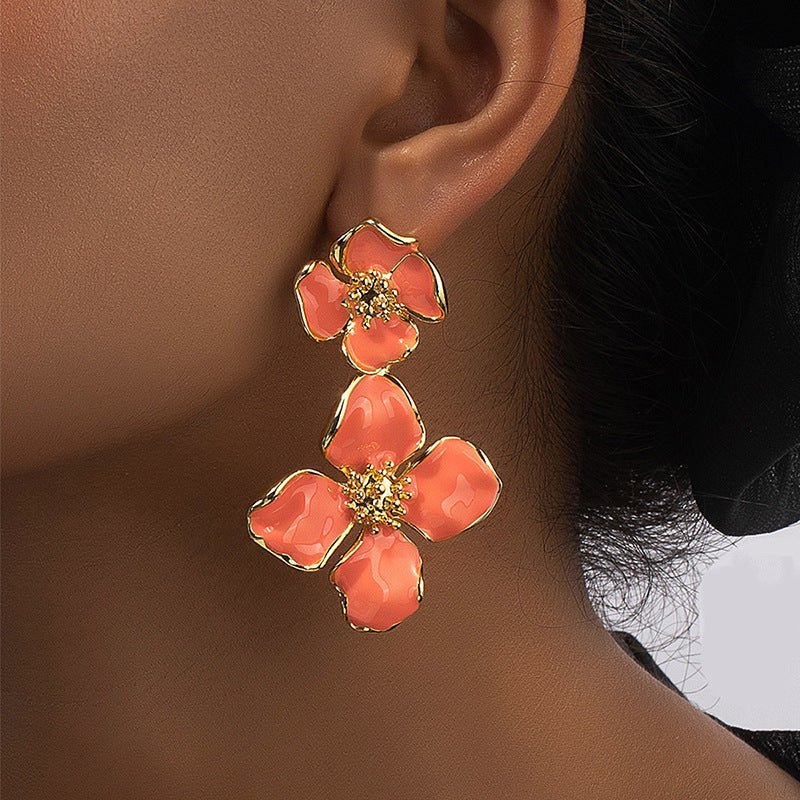Fashion Temperament Enamel Drip Glazed Pairs Of Flower Stud Earrings
