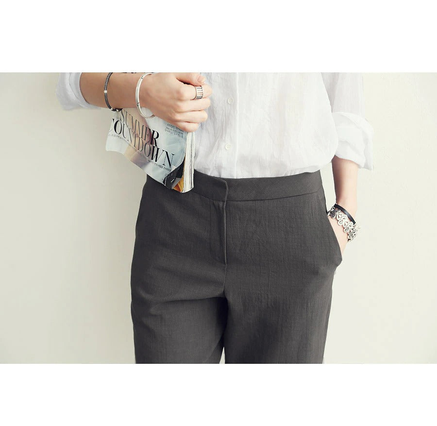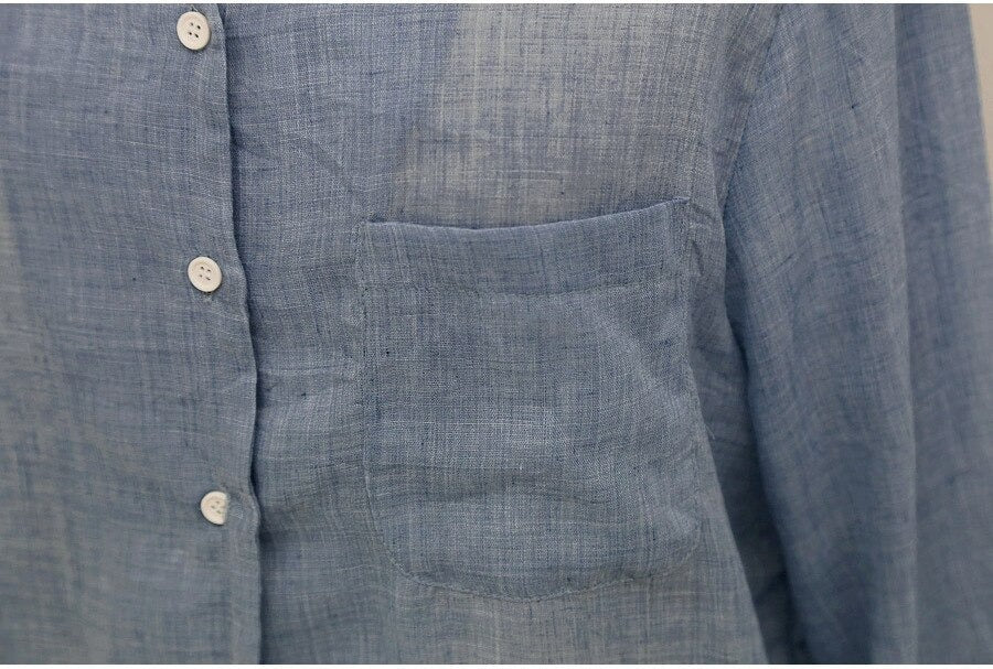 Long-Sleeved White Linen Korean Casual Female Blouse Tops for Autumn