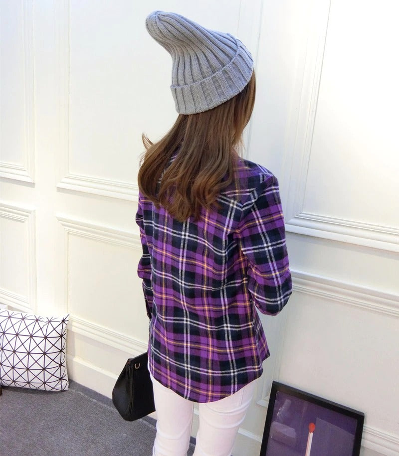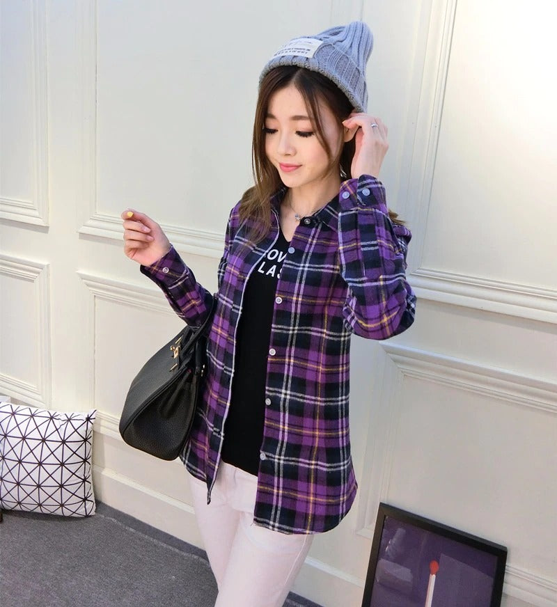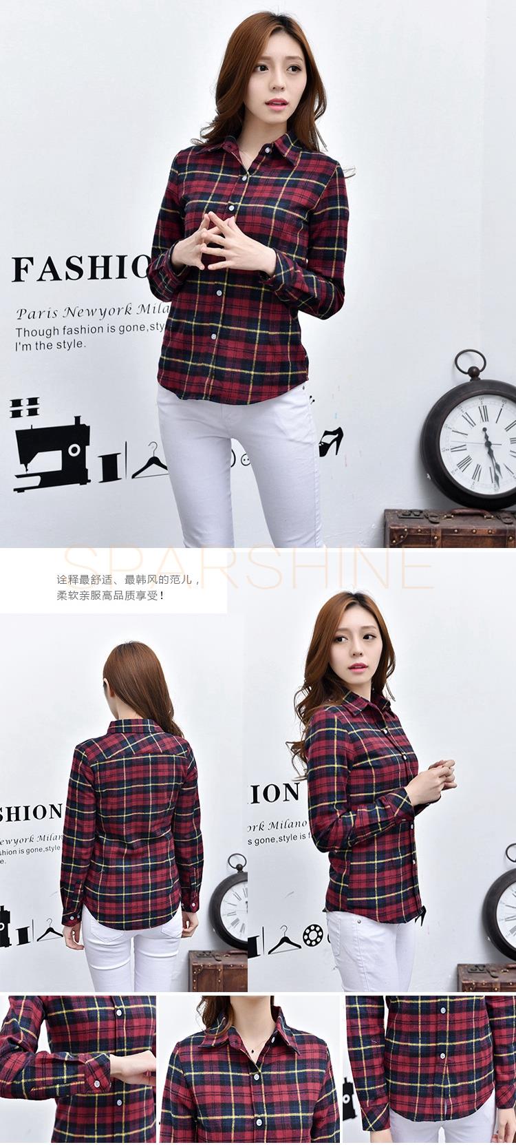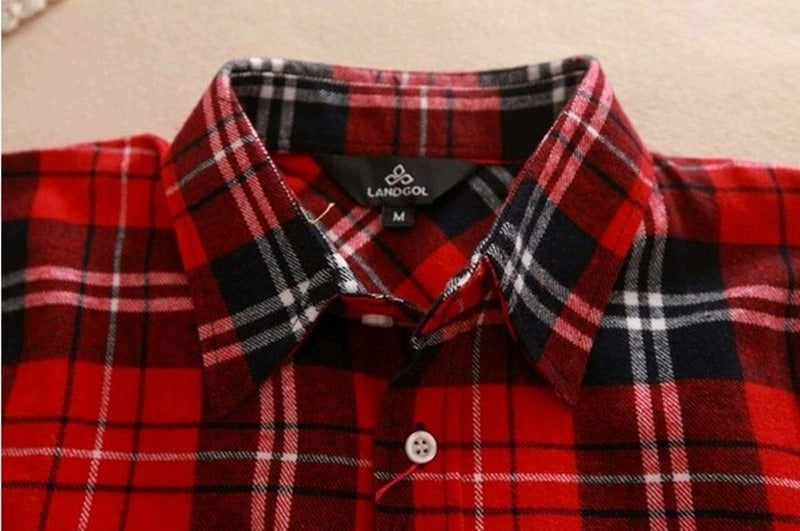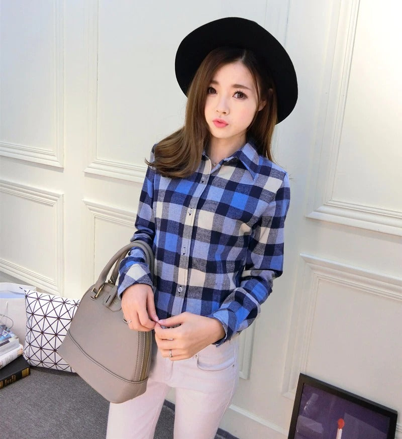Long Sleeved XL Turn Down Collar Women’s Plaid Pattern Shirt for Autumn on Clearance