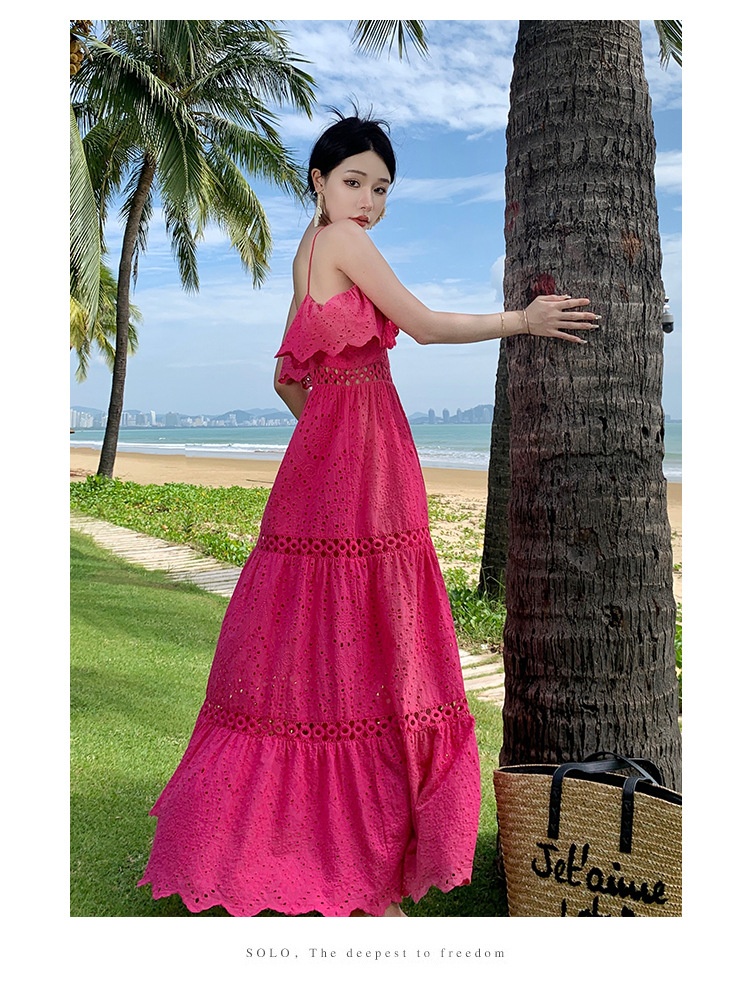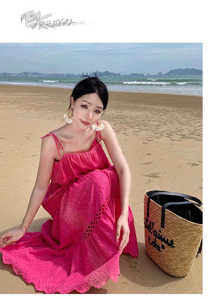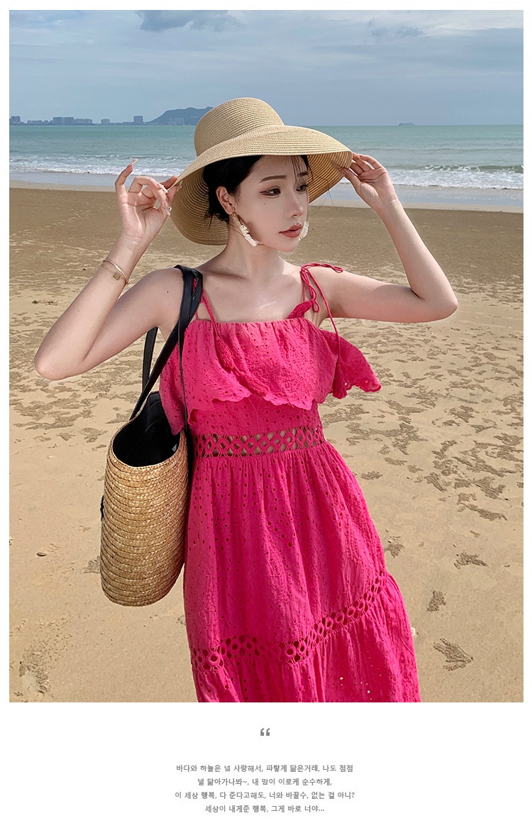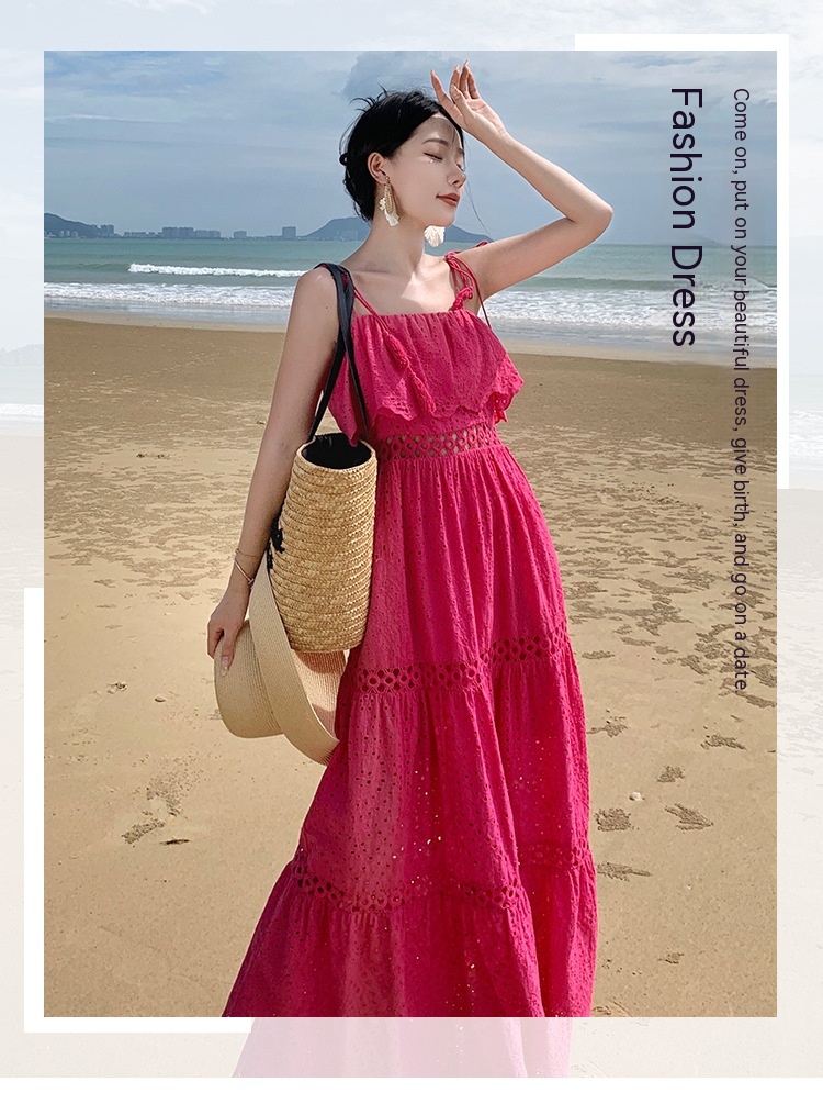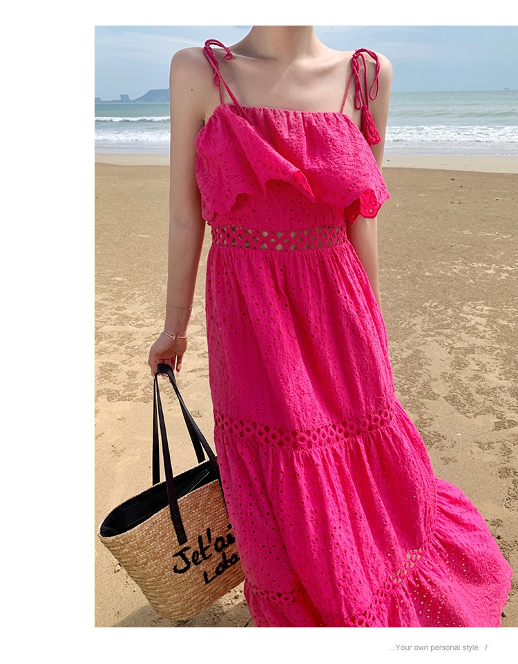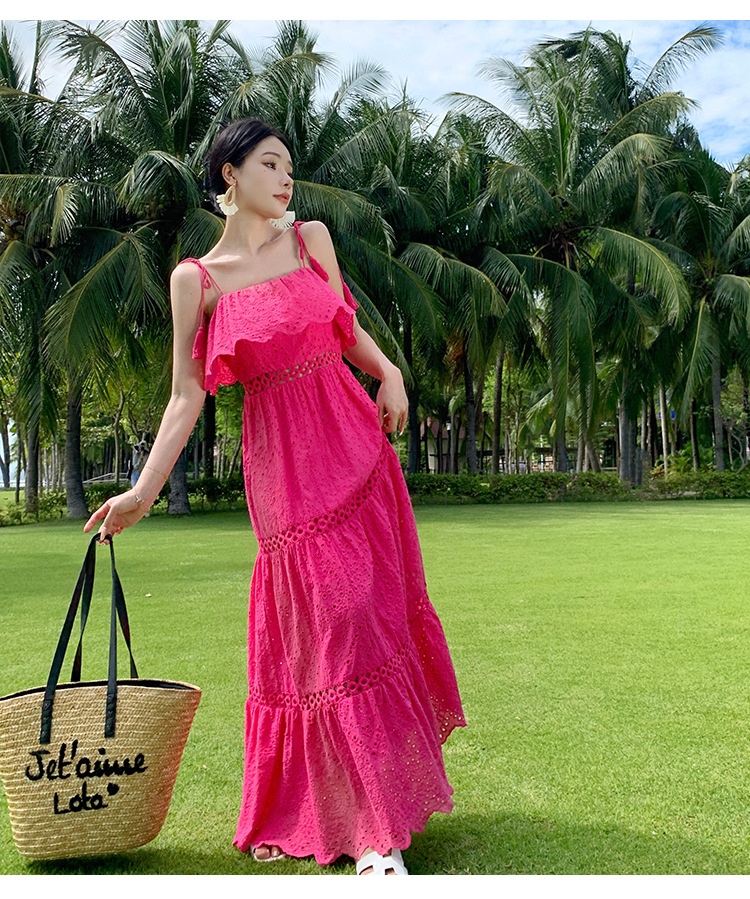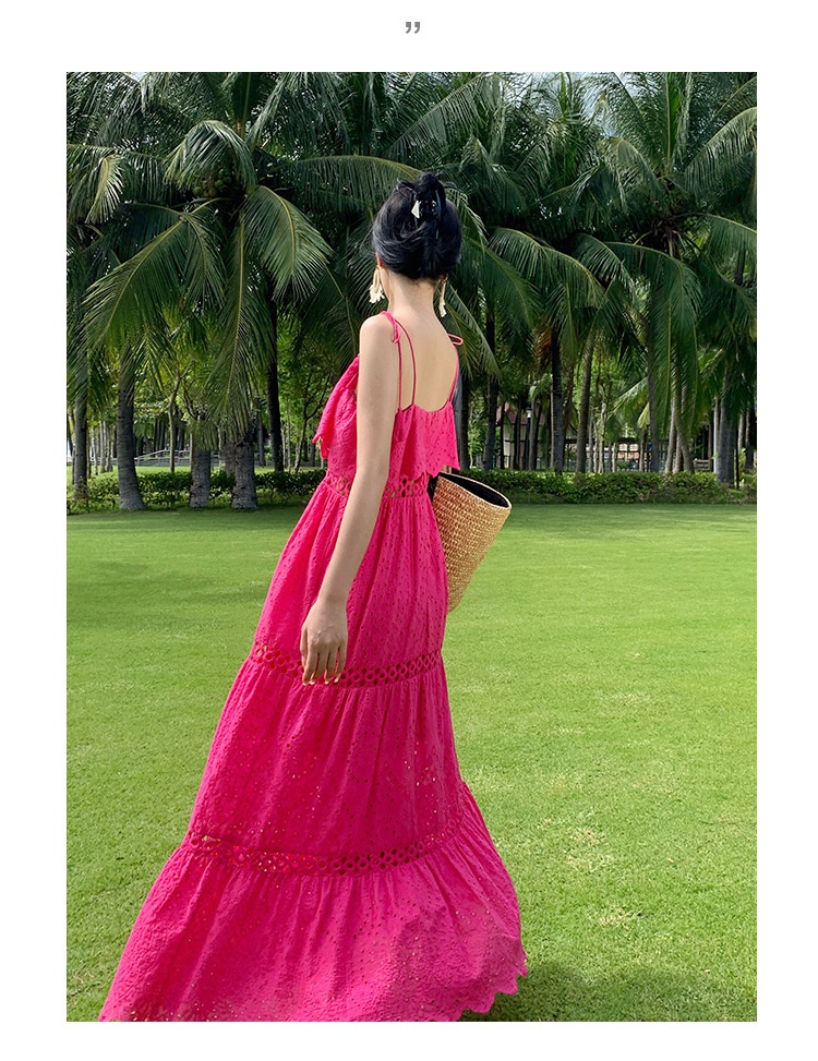 Real Shot Ruffled Stitching Heavy Industry Sling Dress Vacation