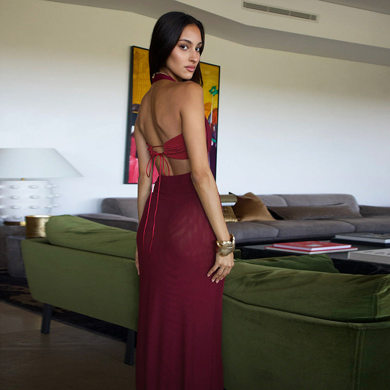 Retro Halter Lace-up Backless Slim Fit Dress Women