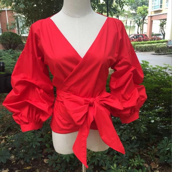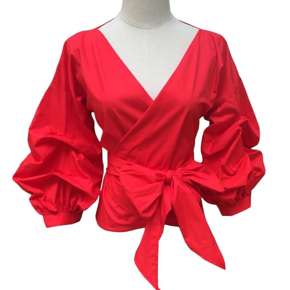 Sexy V Neck White Summer Puff Sleeved Elegant Women’s Plaid