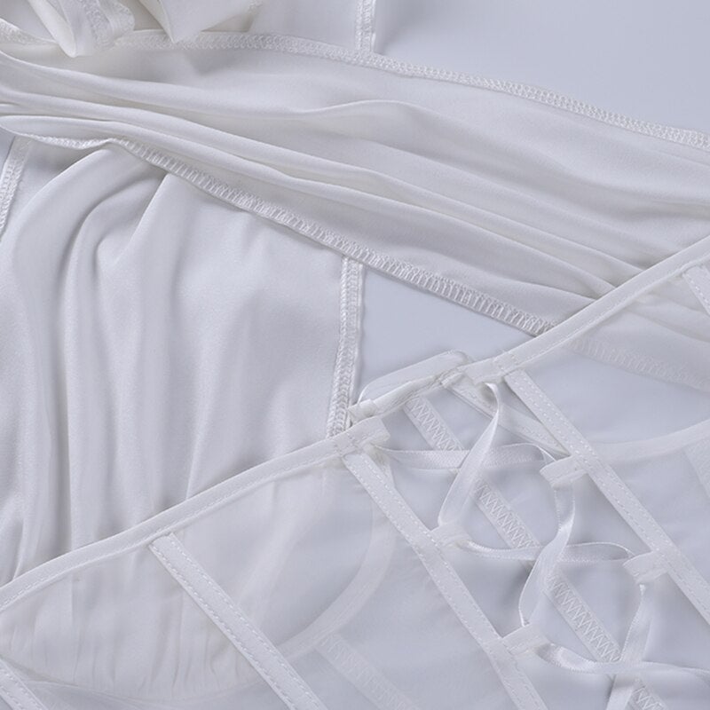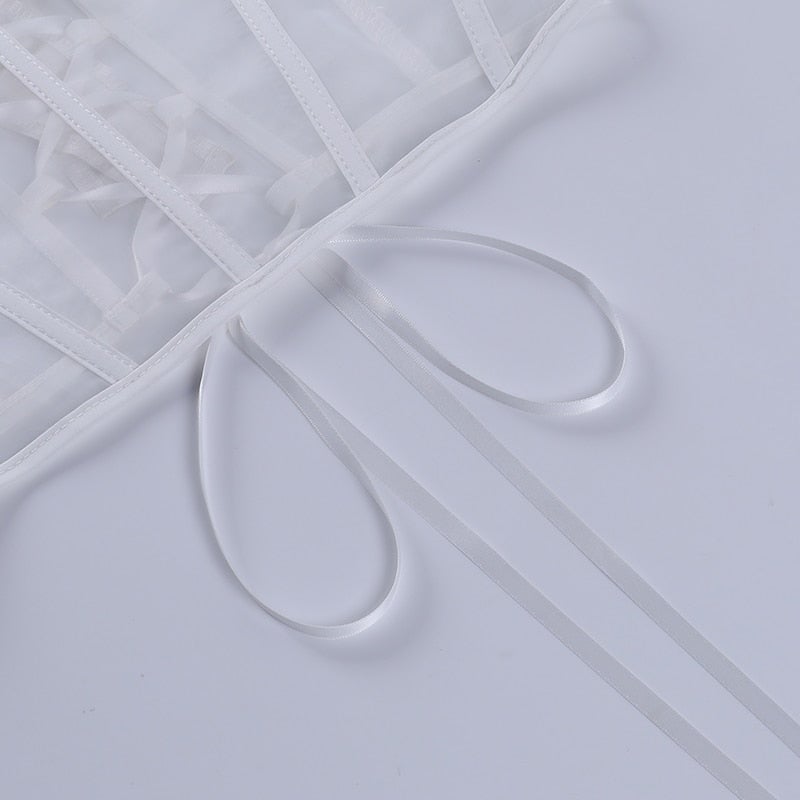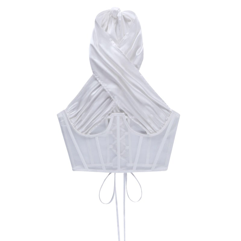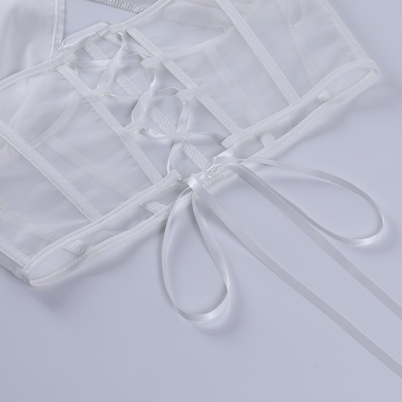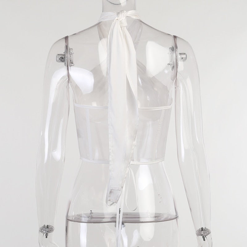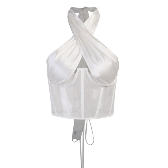 Sexy Women's Mesh Hollow Out Criss Cross Cropped Halter Neck Top