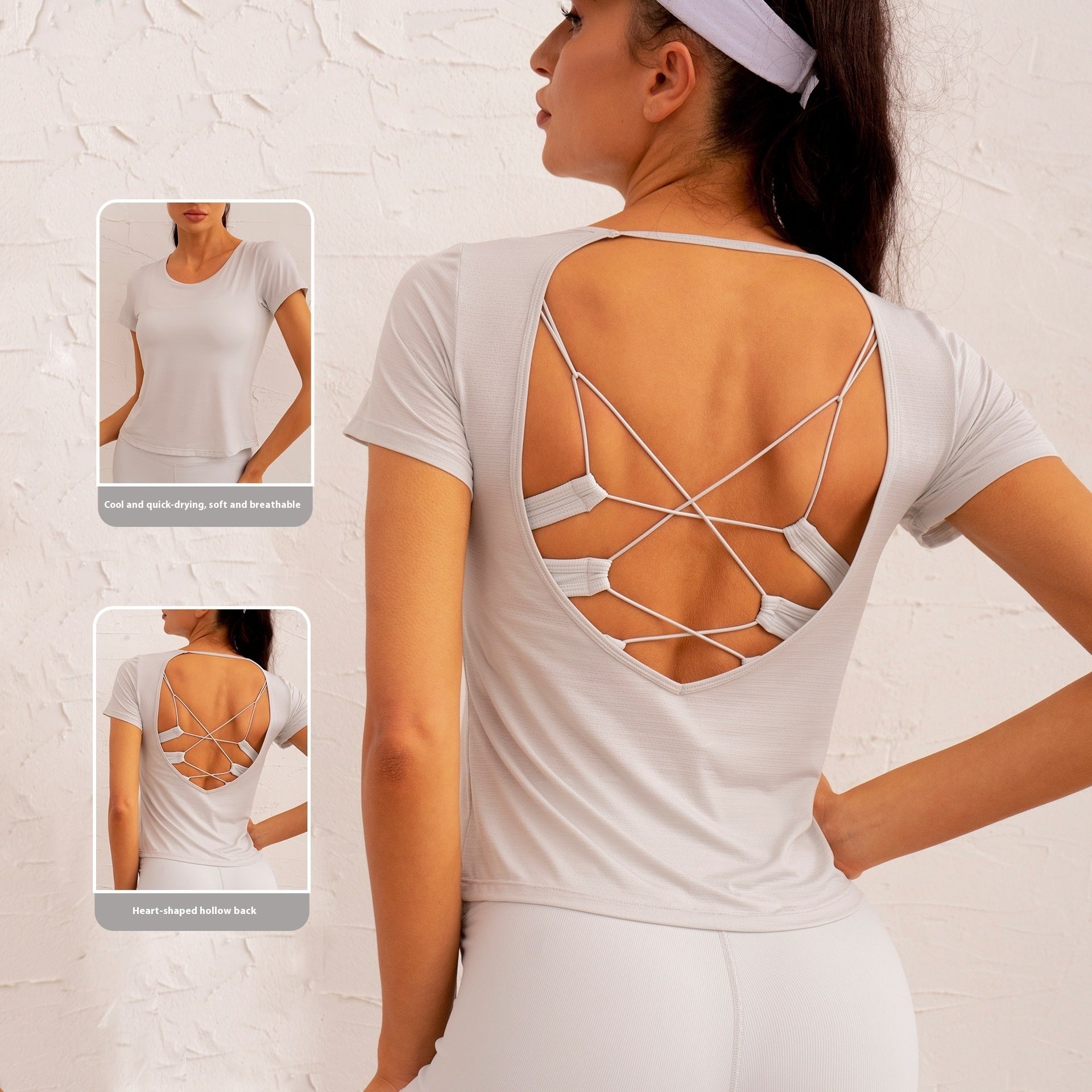 Summer Short-sleeved Mesh Cool Quick-drying T-shirt For Women Hollow-out Beauty Back Lightweight