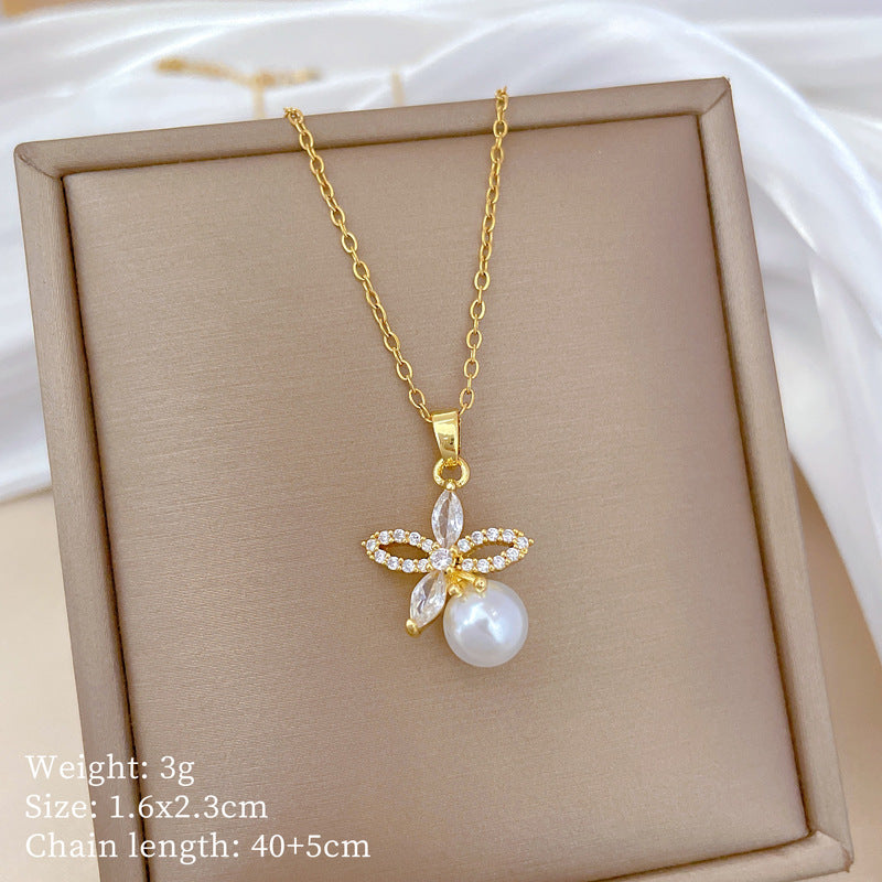 Titanium Steel Necklace And Earrings Suite Light Luxury Full Diamond