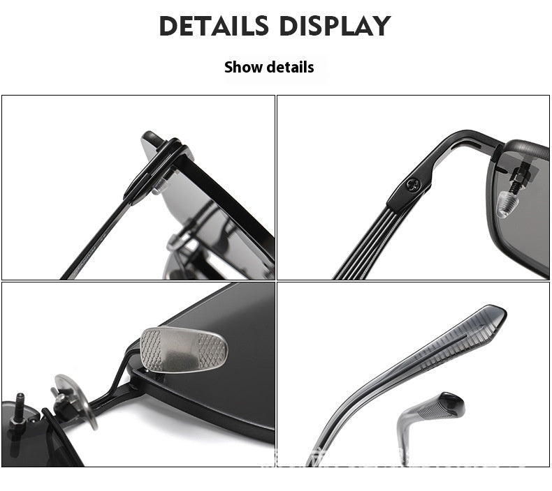 Color: Gun frame Black and Grey lens, bronze frame Black and Grey lens, black frame Black and Grey lens, gold frame gradually dried, silver frame Black and Grey lens