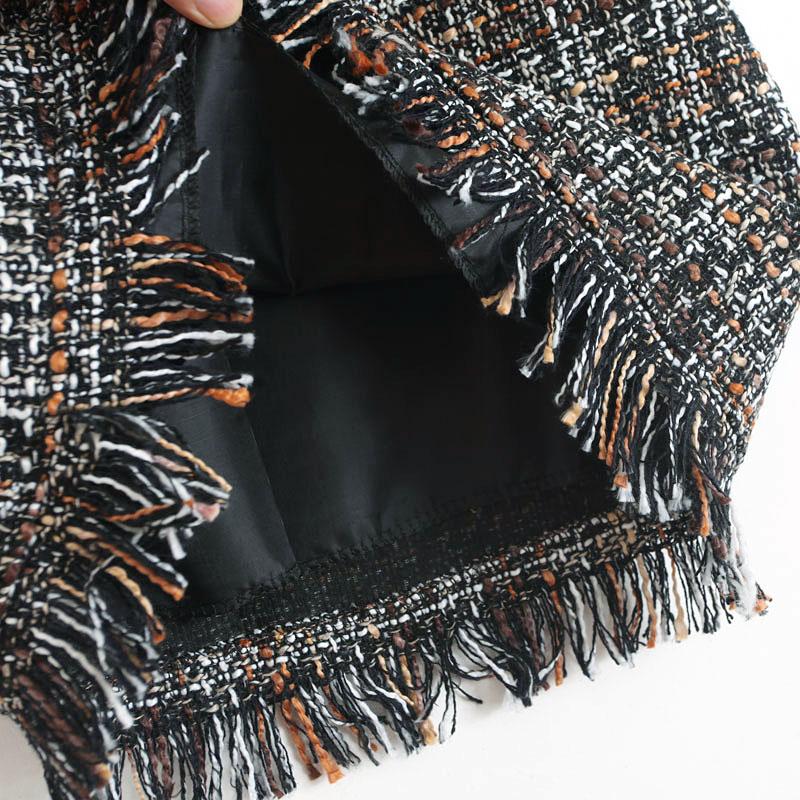 Winter Autumn Woollen Plaid Straight Mini Skirt in Vintage Style for Women