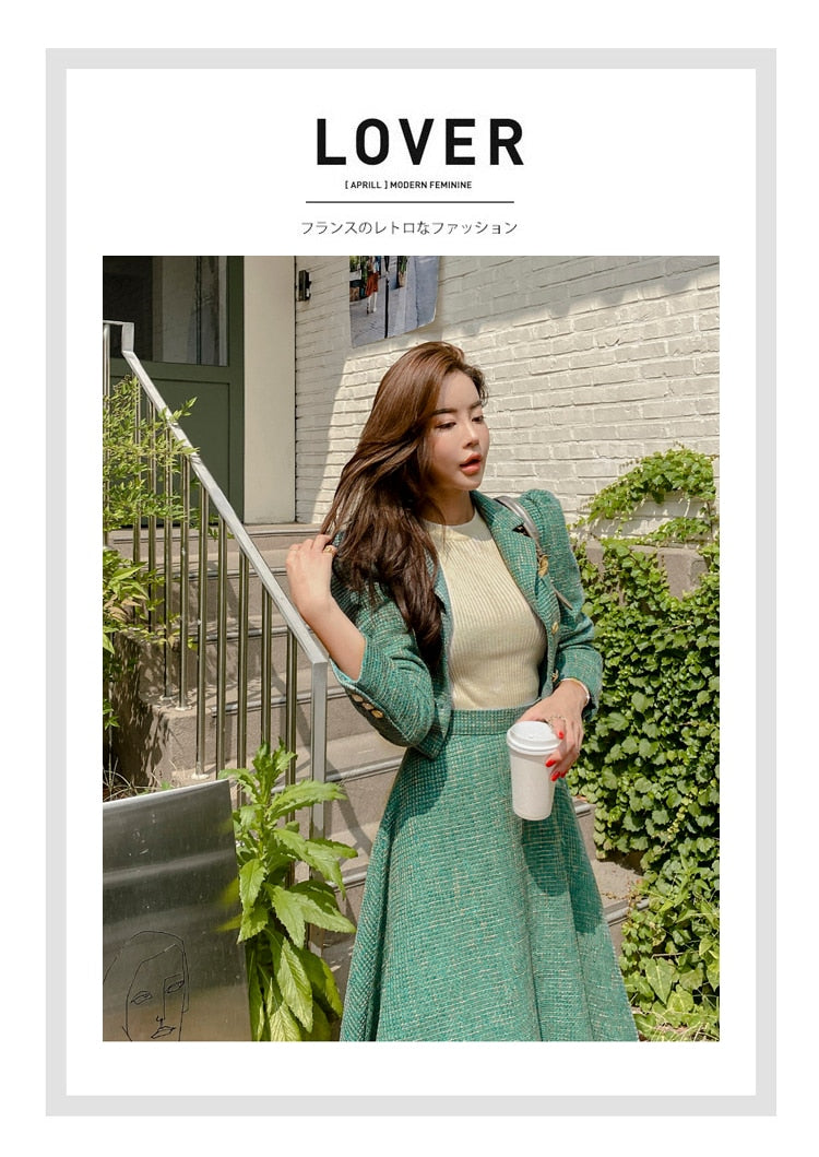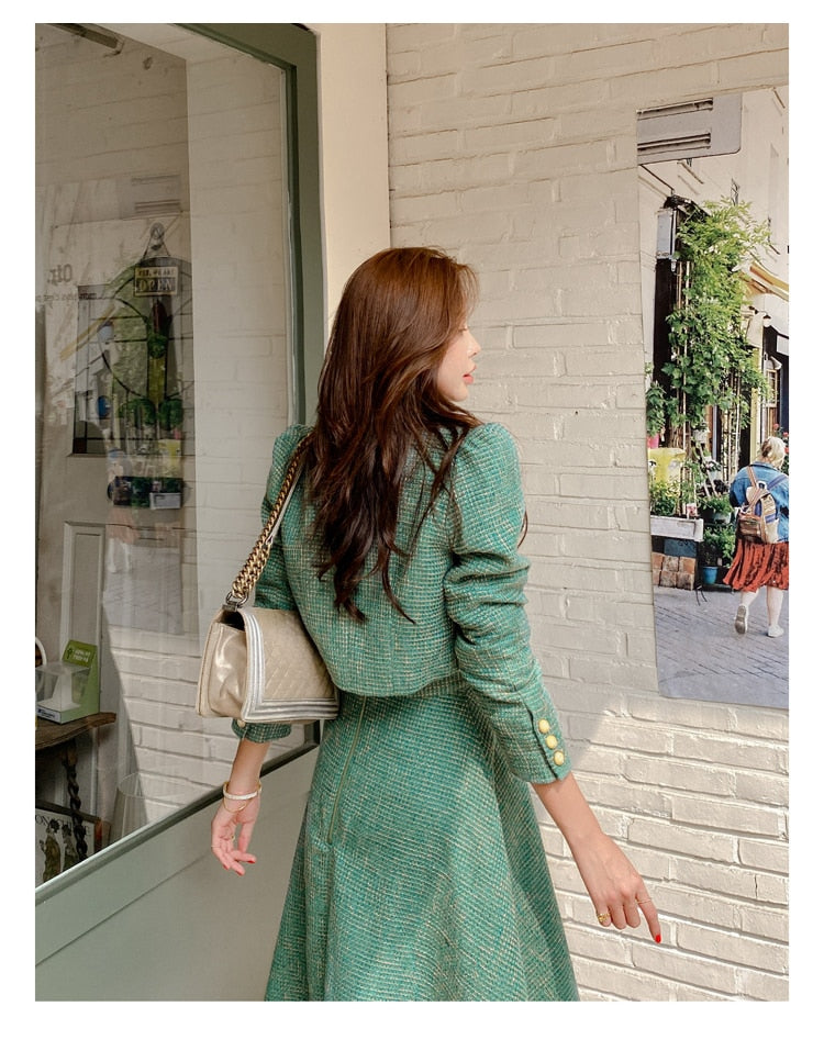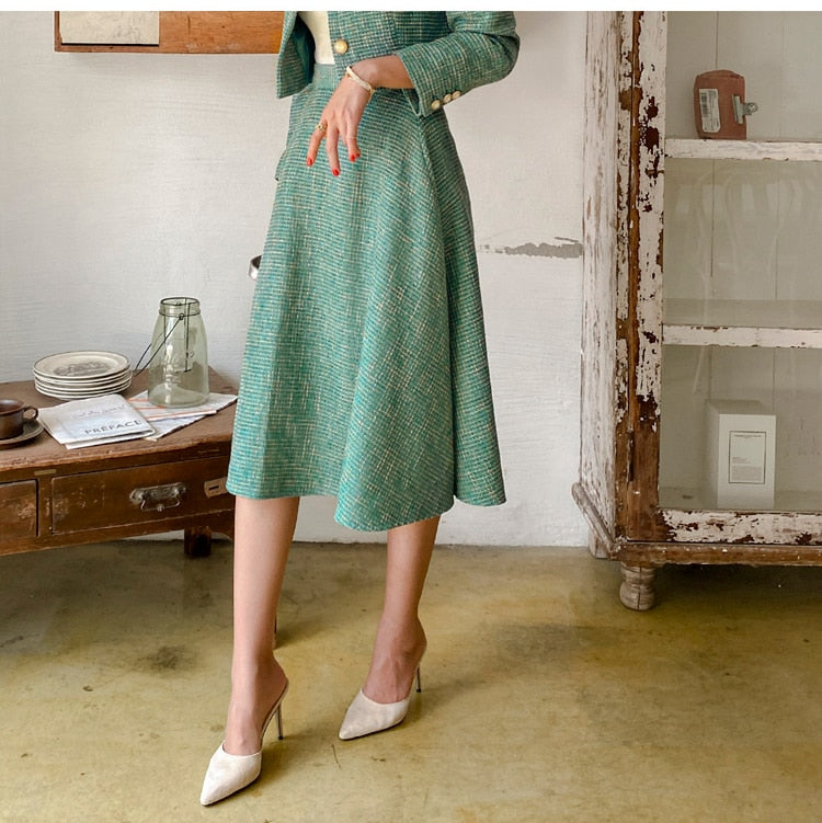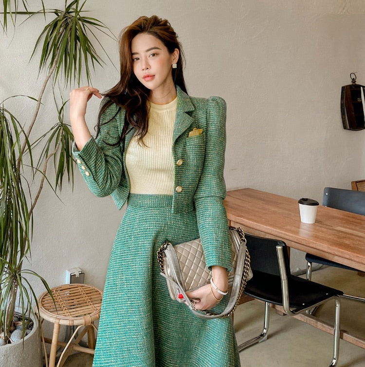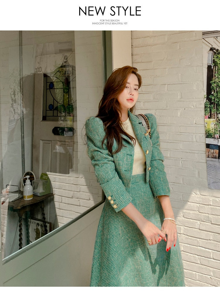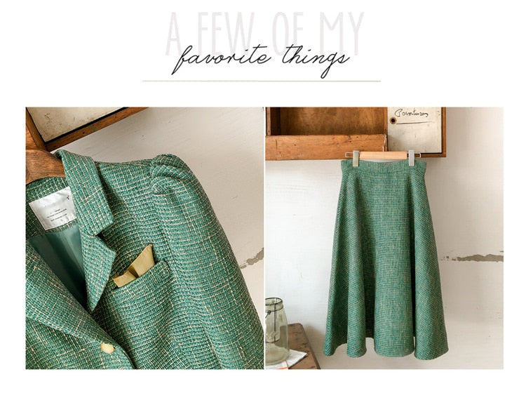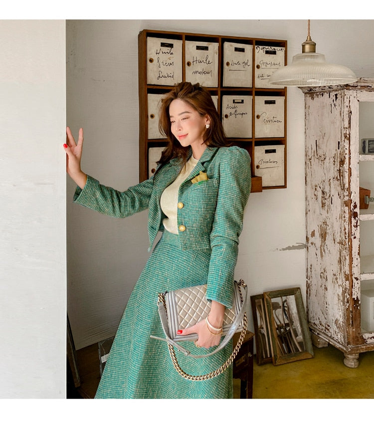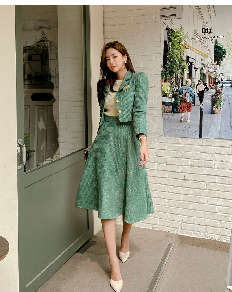 If you love to make a style statement at your office and stay warm as well, then this two-piece set is exactly what you need. This skirt is designed with a notable pocket decoration of excellent quality cotton and wool material. It comes with a turn-down collar and has a solid pattern.