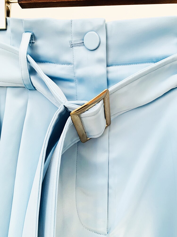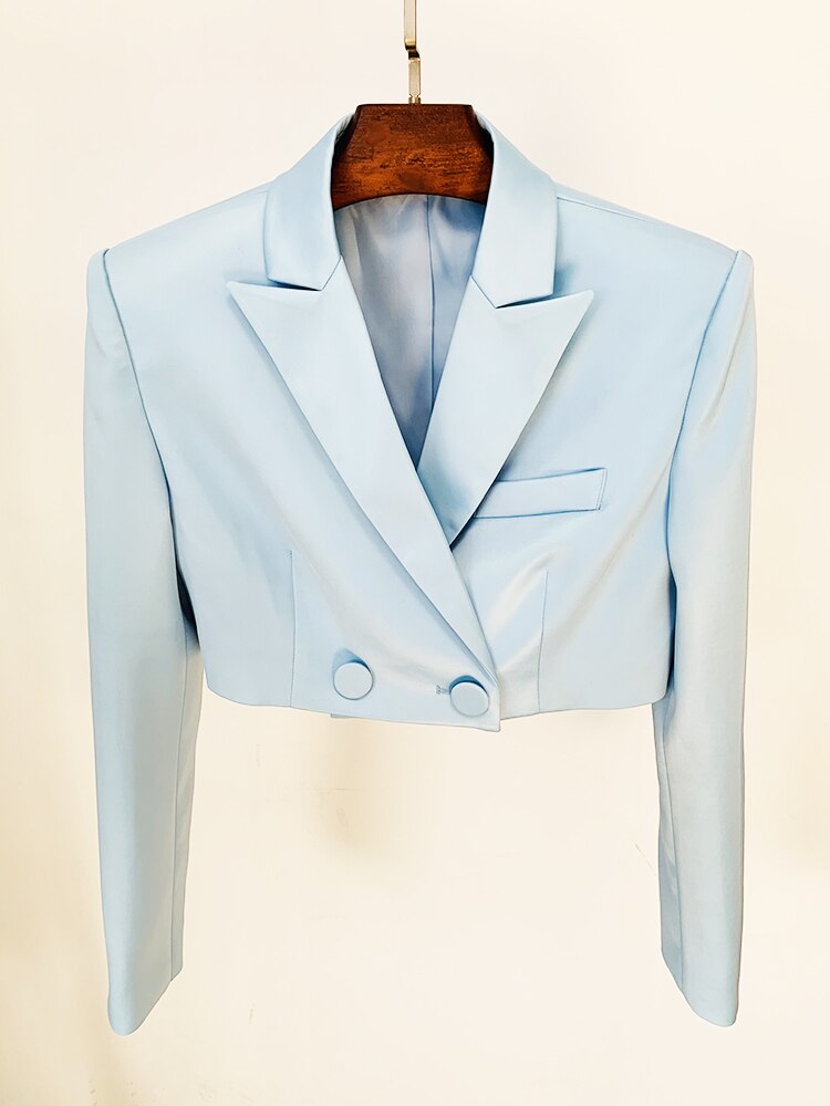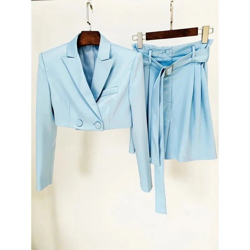 Women's High Street Style Crop Blazer Belted Shorts Two-Piece Set