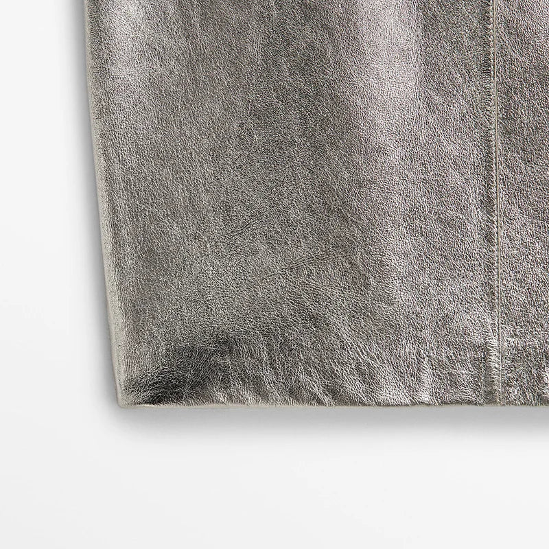 Women's Luxury Silver Genuine Sheepskin Leather Slim Fit Mini Skirt