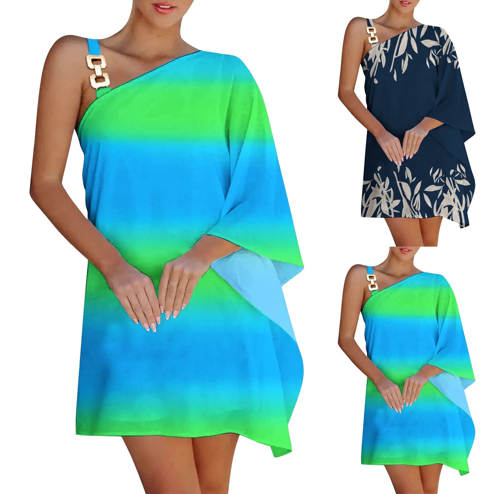 Women's Printed Chain Strap Half Off-shoulder Dress