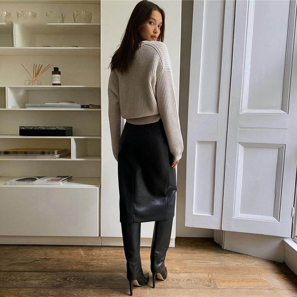 Women's Sexy Streetwear Synthetic Leather High Waist Slit Pencil Office Skirt